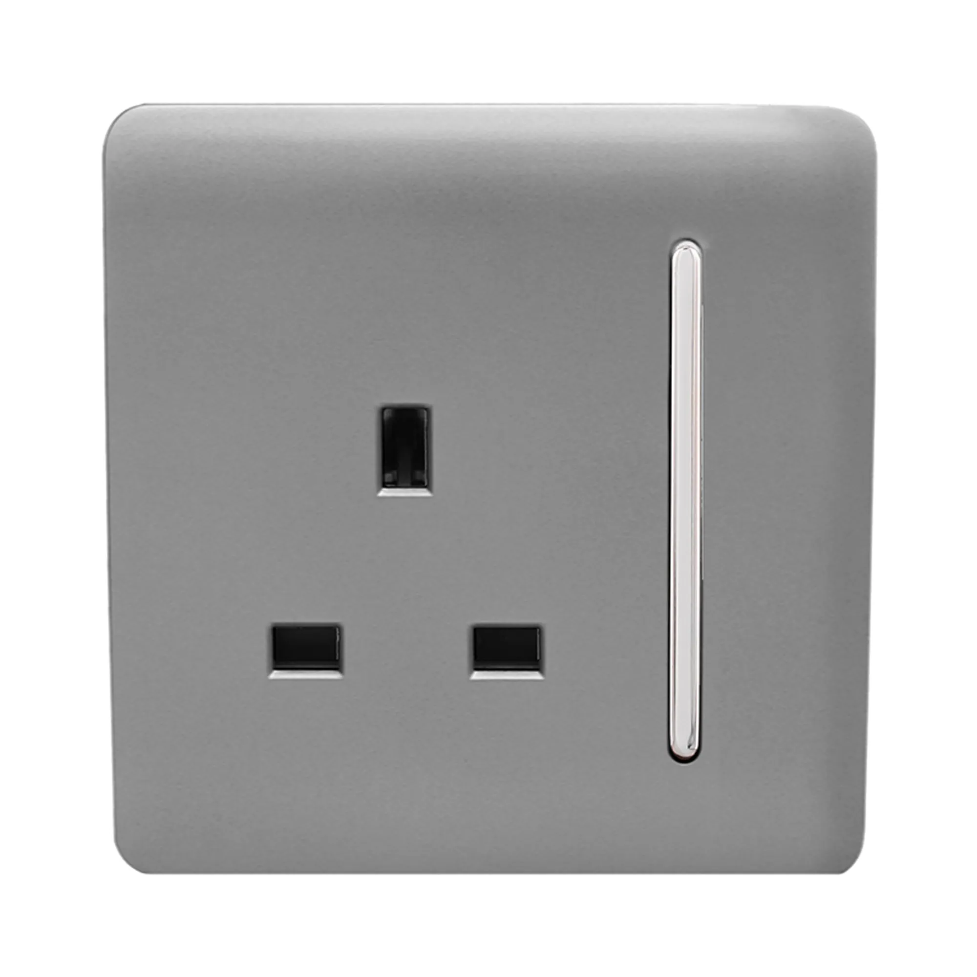 Trendi, Artistic Modern 1 Gang 13Amp Switched Socket Cool Grey Finish, BRITISH MADE, (25mm Back Box Required), 10yrs Warranty
