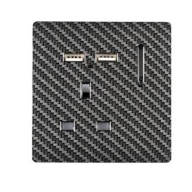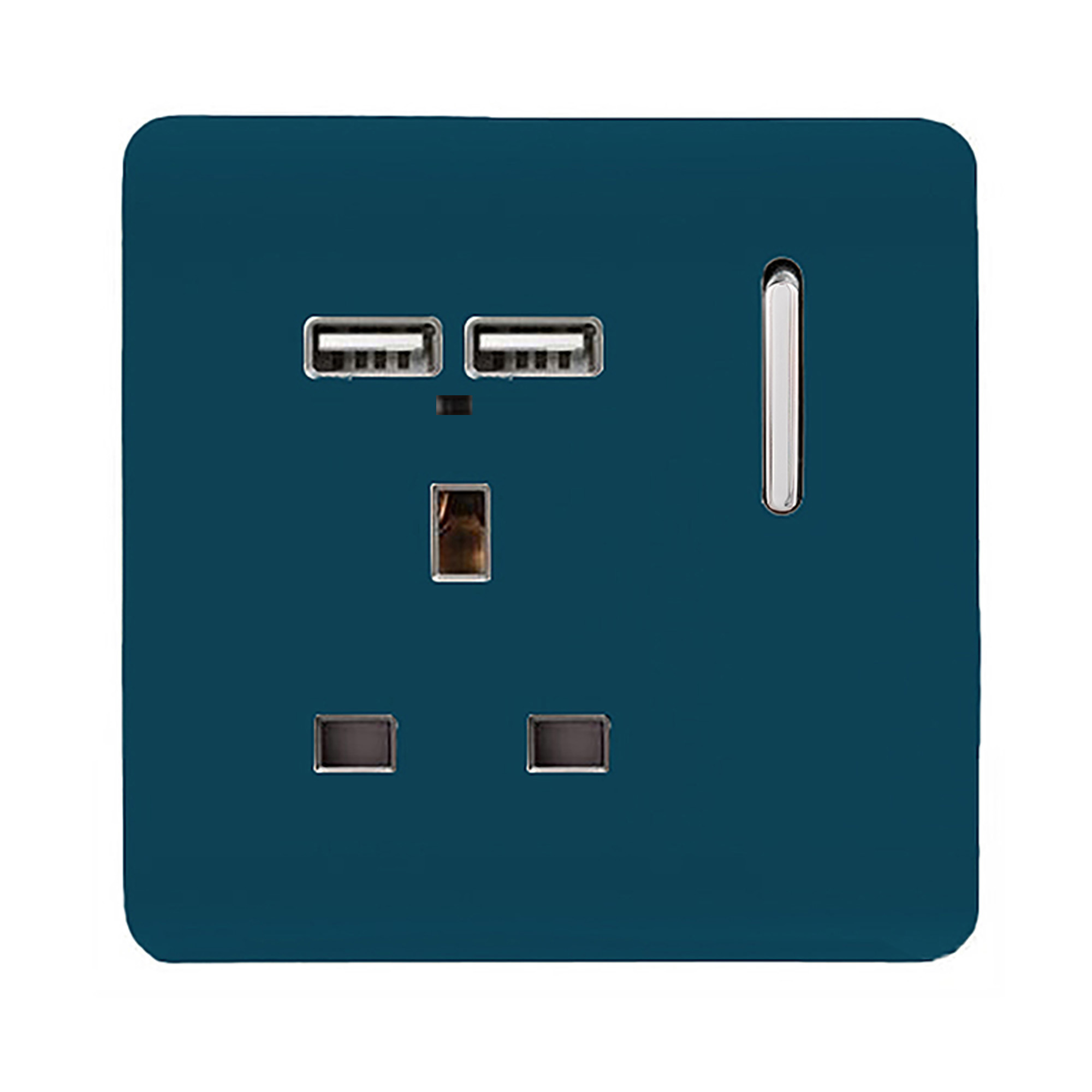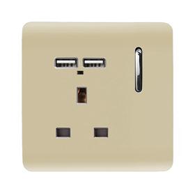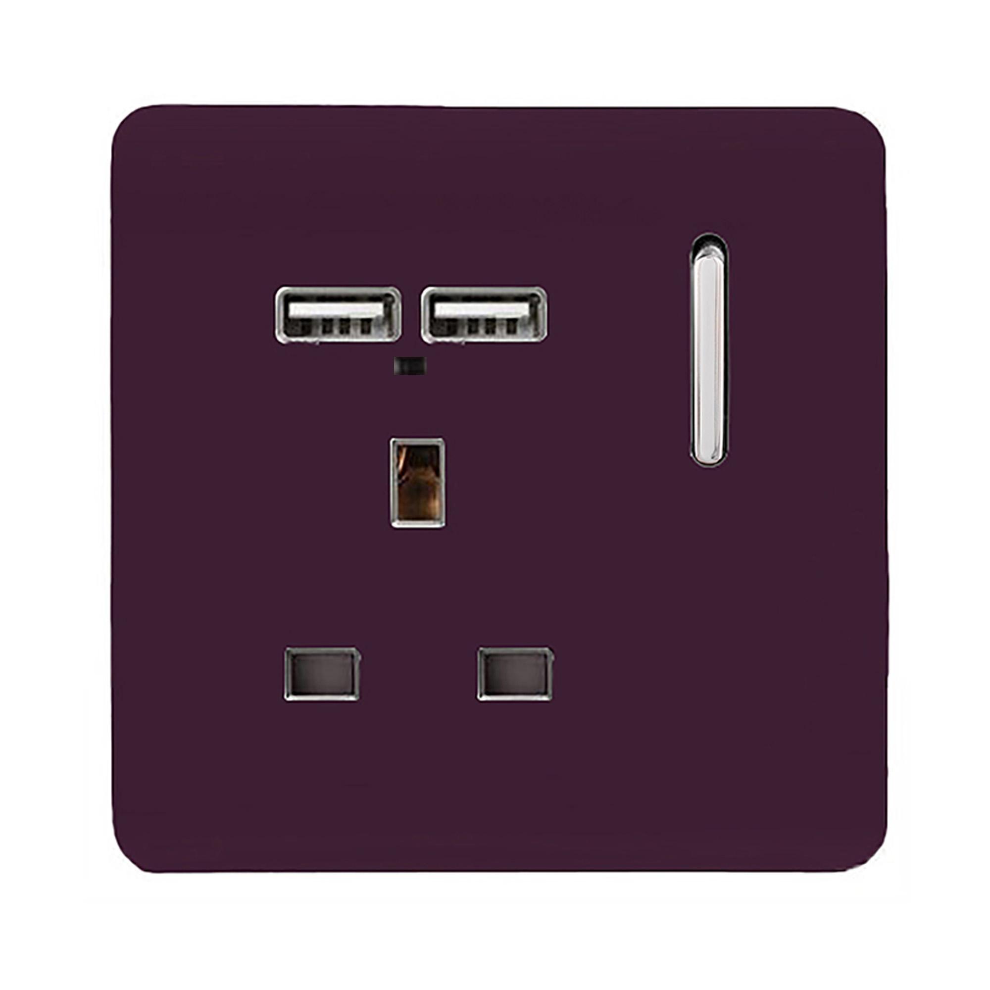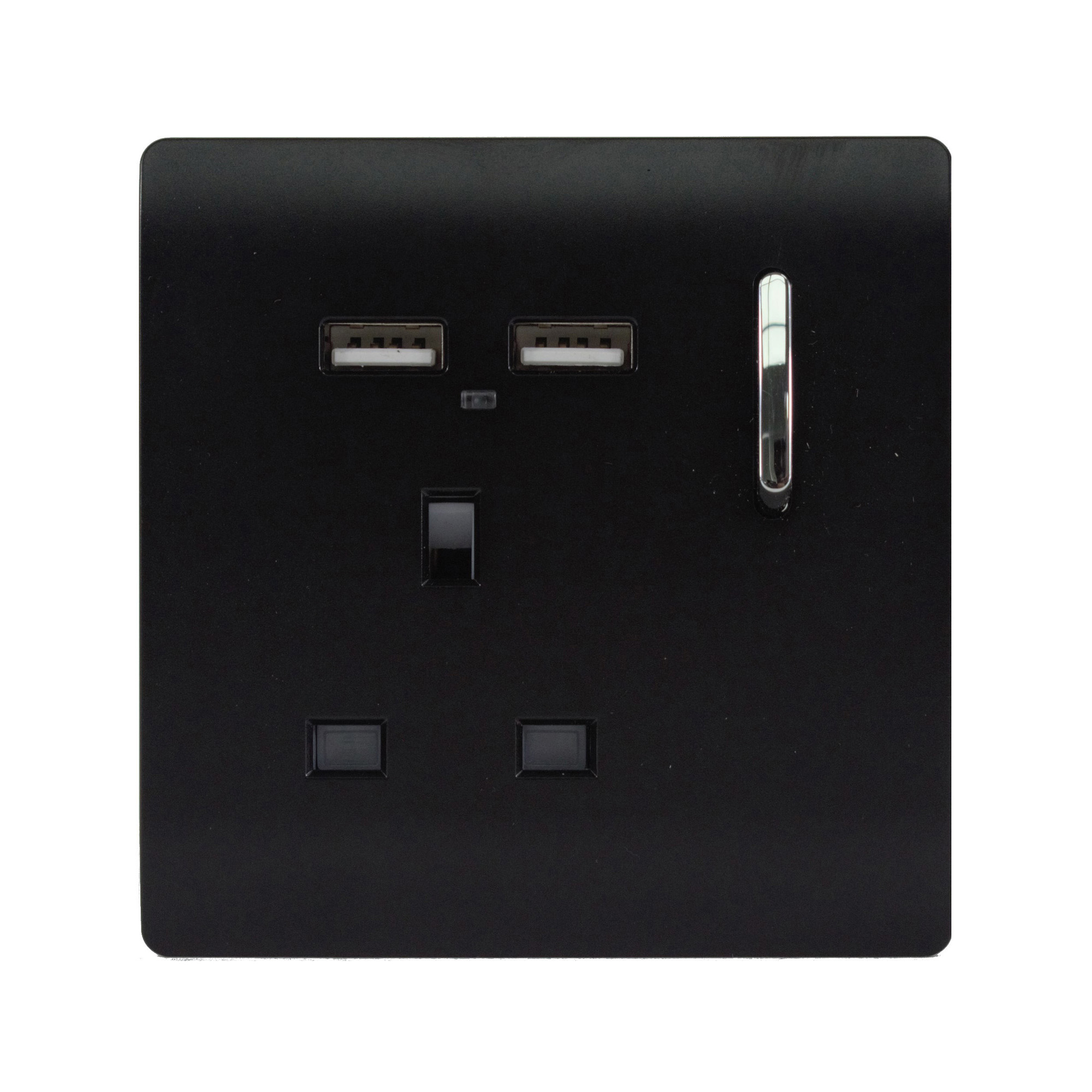 Cool Grey Screwless 1 Gang Switched Single Socket 13A With 2 x USB-A 10W (Shared) With Neon Insert, (35mm Back Box Req.), 10yrs Warranty