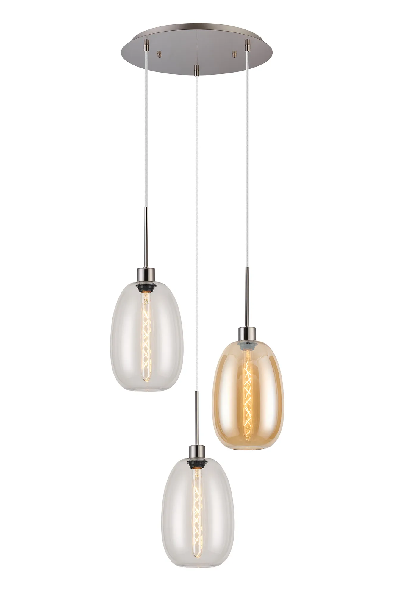 OTHERLori 40cm Round Pendant, 3 Light Adjustable E27, Satin Nickel/Amber/Chrome/Opal Diamond Shades
