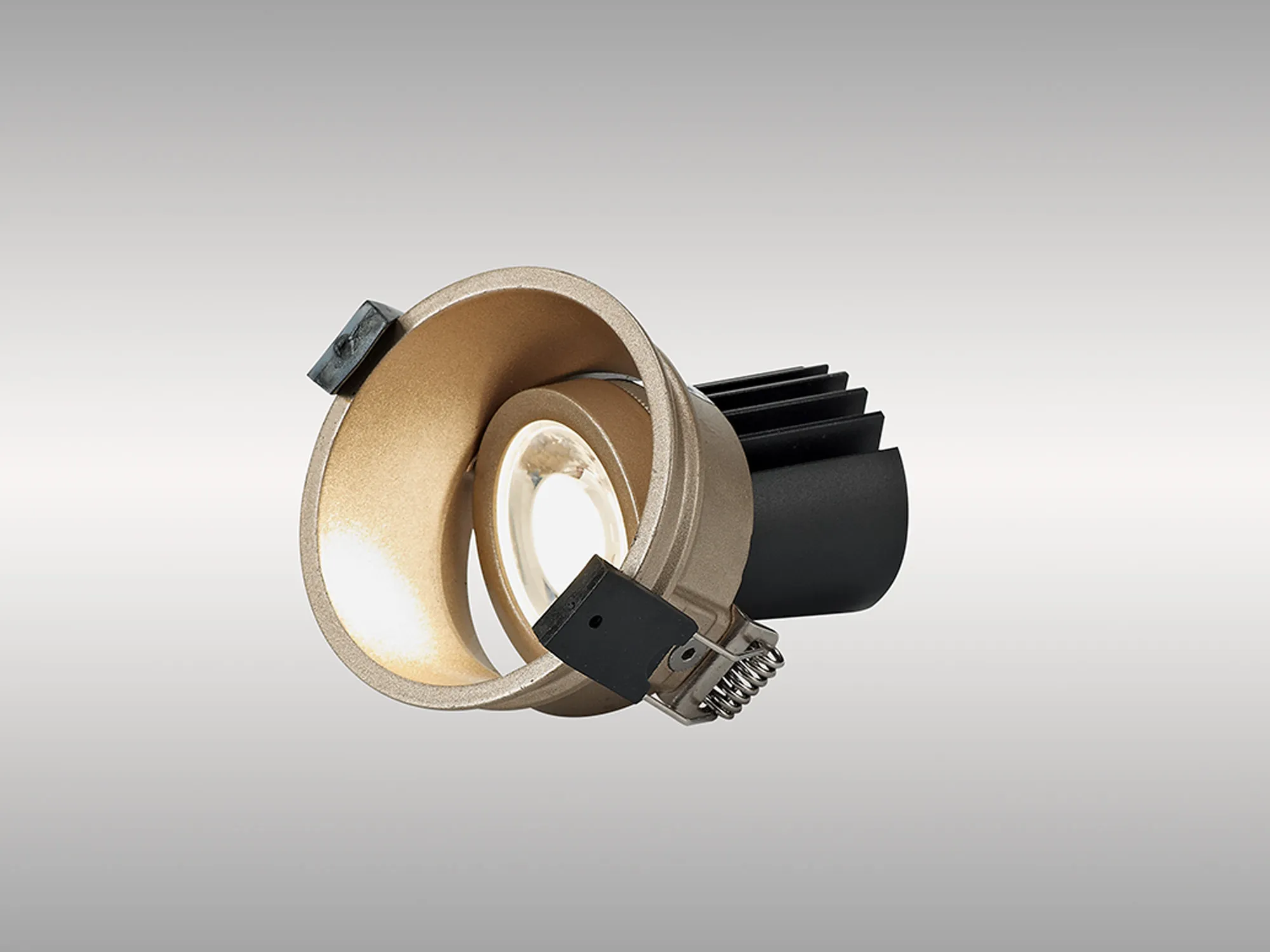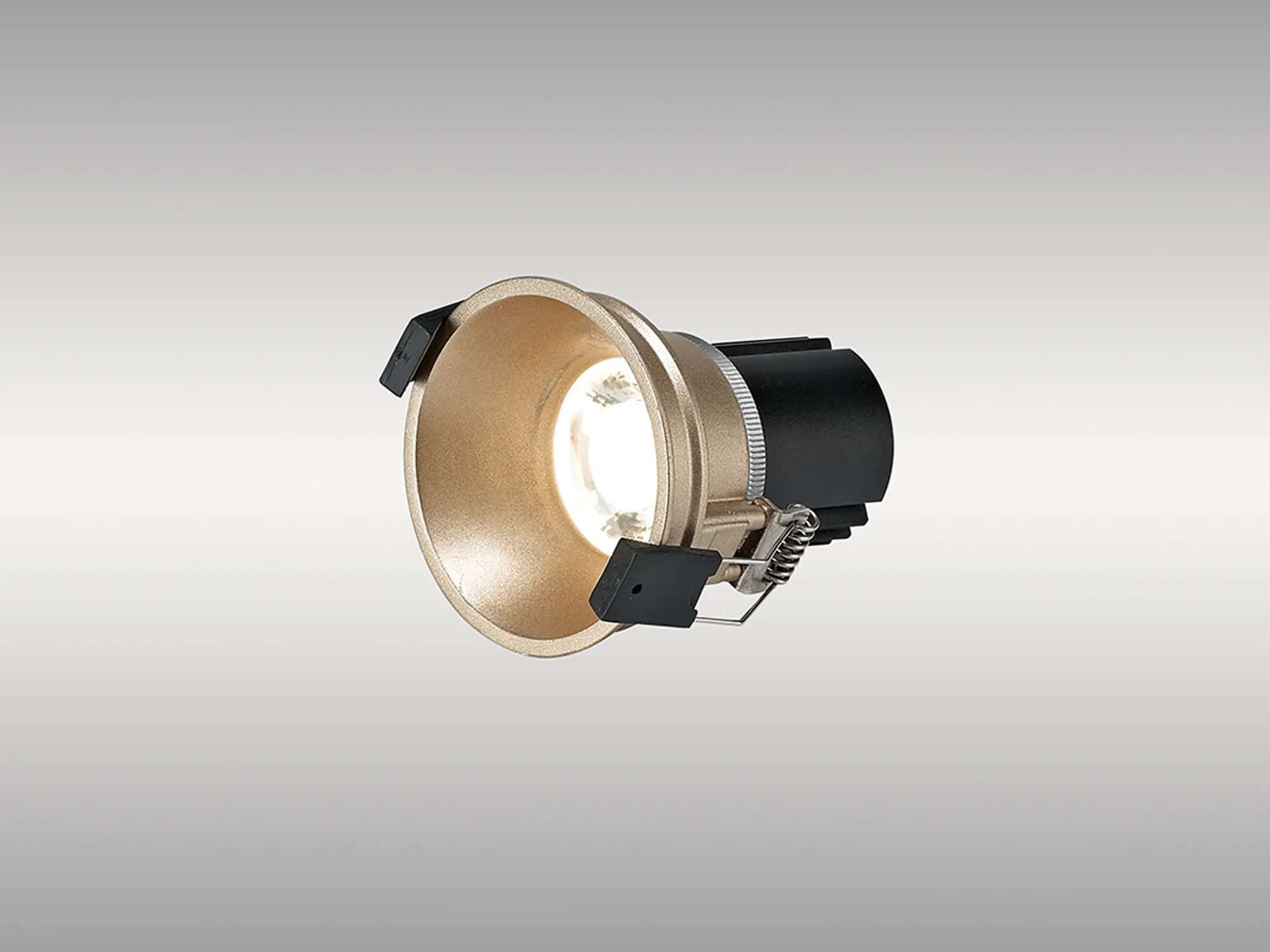 Brief DescriptionBania 12 Powered by Tridonic 12W 3000K 1200lm 24° CRI>90 LED Engine, 350mA Gold Fixed Recessed Spotlight, IP20